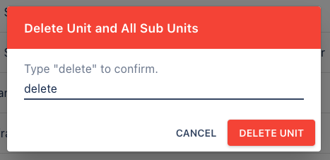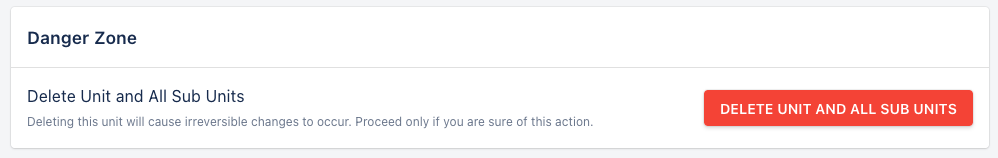 A unit can be archived by hitting delete unit in the danger zone. This will archive the unit and all of it's sub-units. Once deleted, you will not be able to retrieve information for the unit but if a deleted unit needs to be unarchived, you can contact IT Services to unarchive a unit.