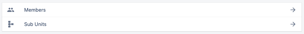 This page will list all immediate sub units of the unit you are currently navigating. You can select the sub unit for more information or click 'create sub unit' to add a new sub unit to the parent unit.