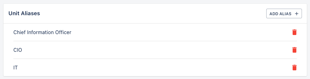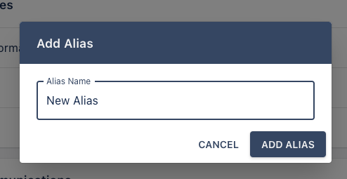Adding an alias requires clicking the add Alias button and entering the alias name