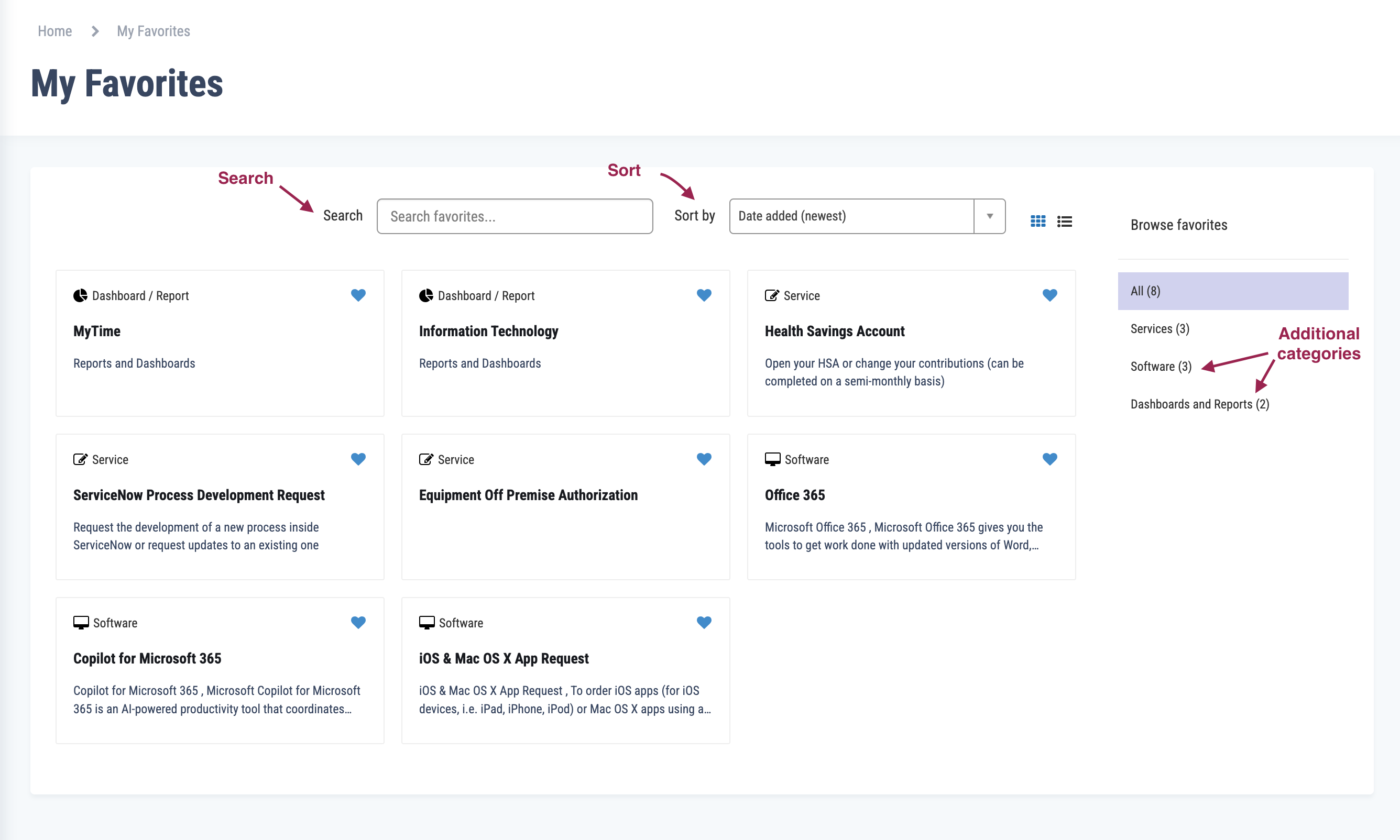 Improved search and sorting functionality for favorites