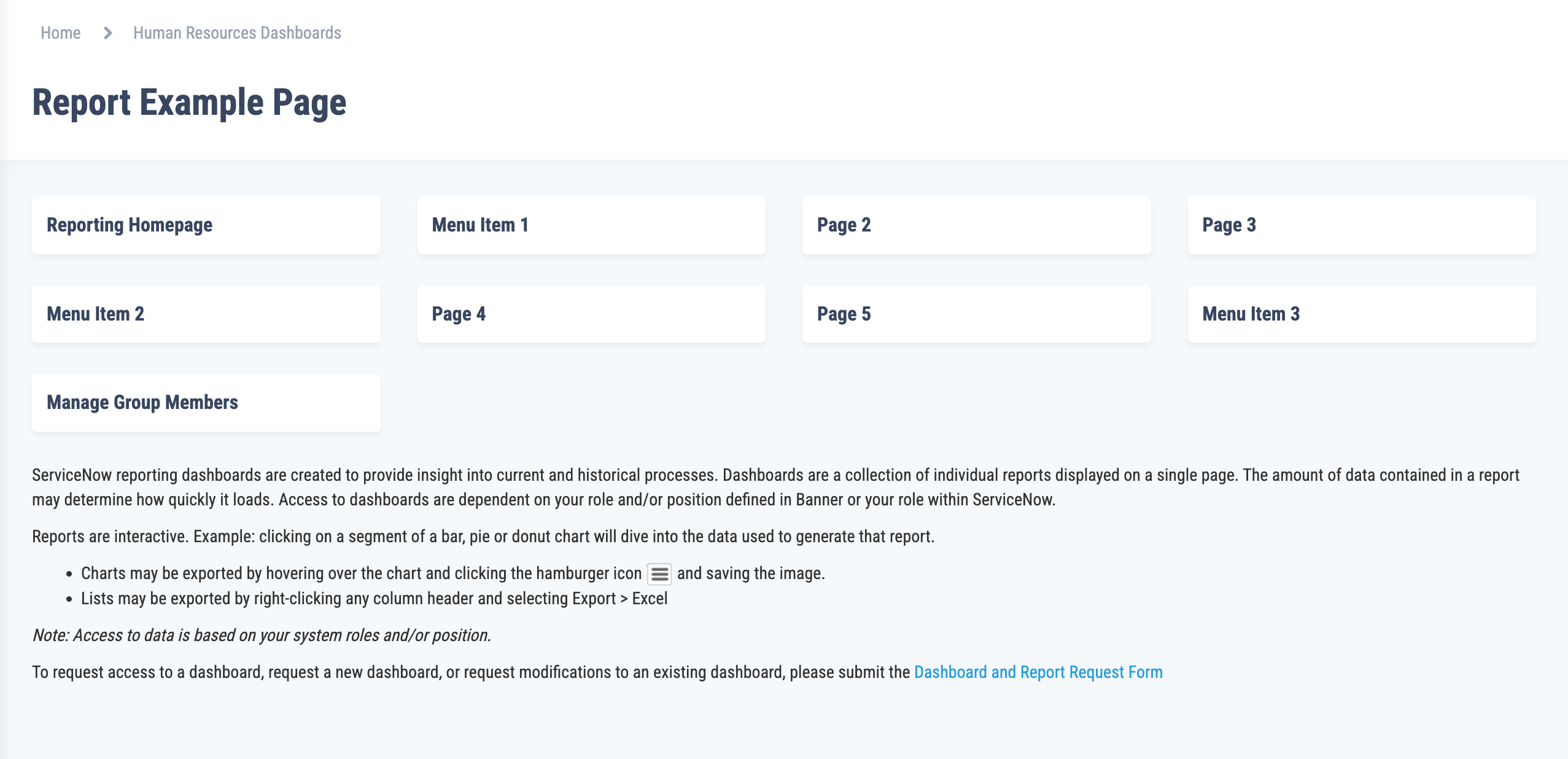 Consistent, standardized reporting interface across pages